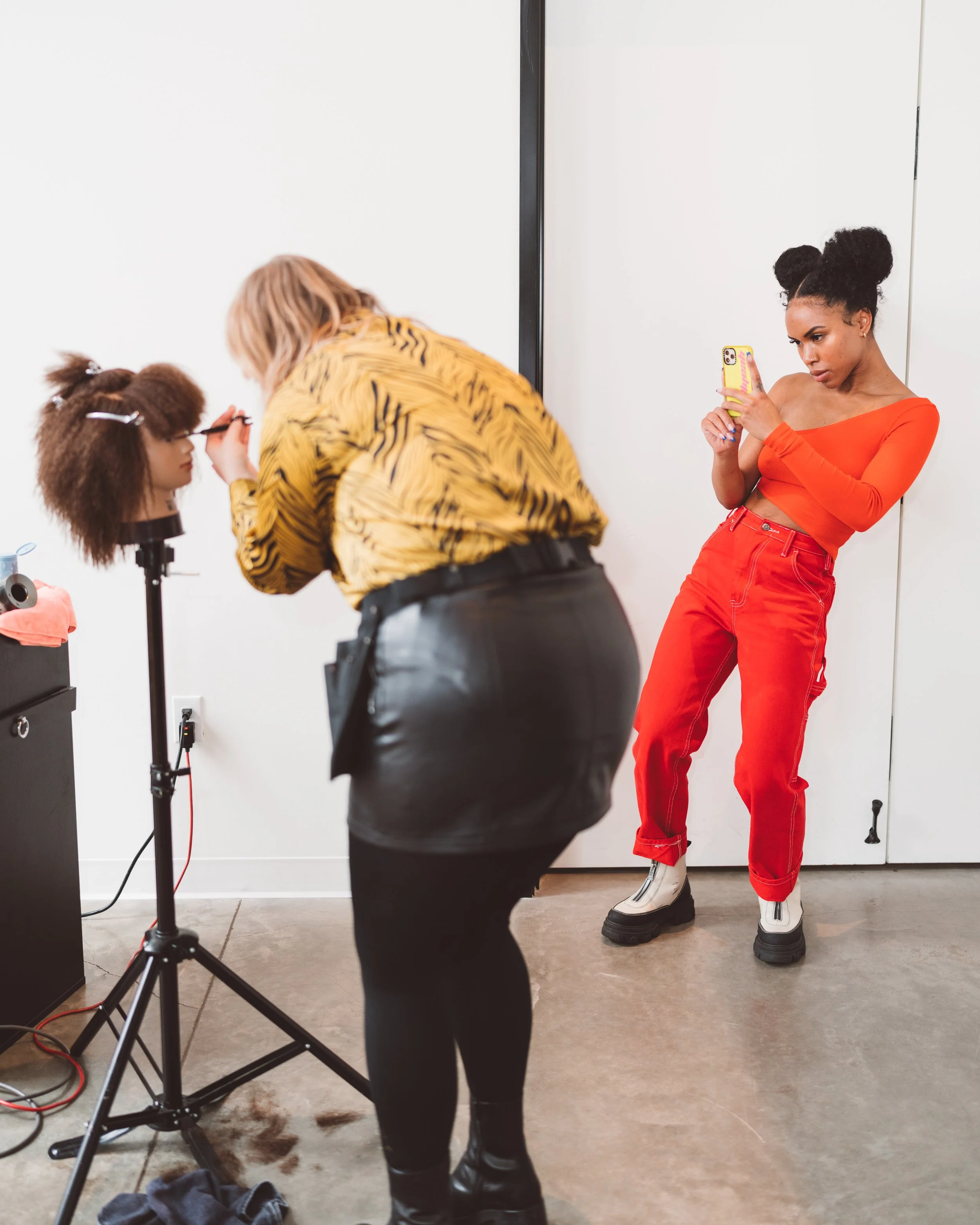 “Education is so exciting when you’re able to be present and communicate effectively. There is opportunity for everyone to grow, including the teacher. Remove ego and gain from each other. Get comfortable with the unknown and explore as a team. Precision haircutting is a universal language in our industry. From that foundation, all of the styles and tools we utilize today have been born. When it comes to Curls it’s important to connect what we already know to a diverse array of textures. Precision cutting and most color techniques were not created with highly textured hair in mind but we as the experts can “crack the code” to bring high-level shapes to the highly textured hair community. Alas, all hair has texture, some more than others. The roadmap doesn’t change, but just like when we switch terrain, we adjust our approach.” — Mahaila Penson